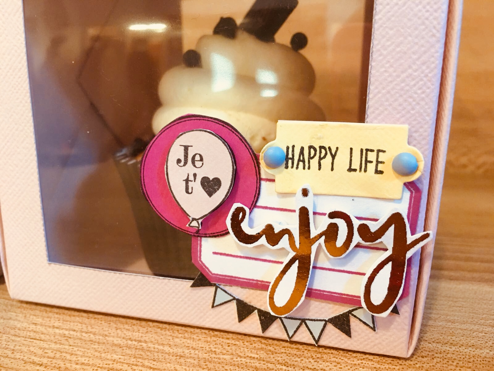 Il timbro di buon compleanno l'ho timbrato più volte in due colori, ritagliato i pezzi che volevo e riassemblato.